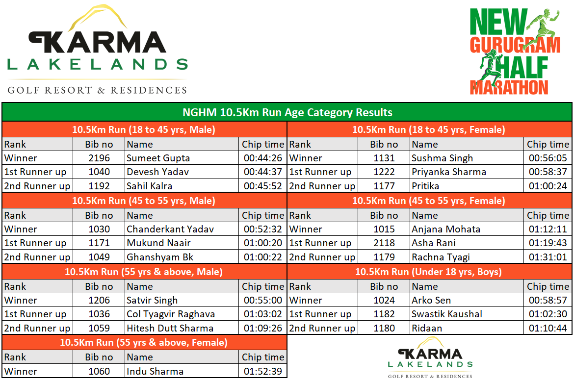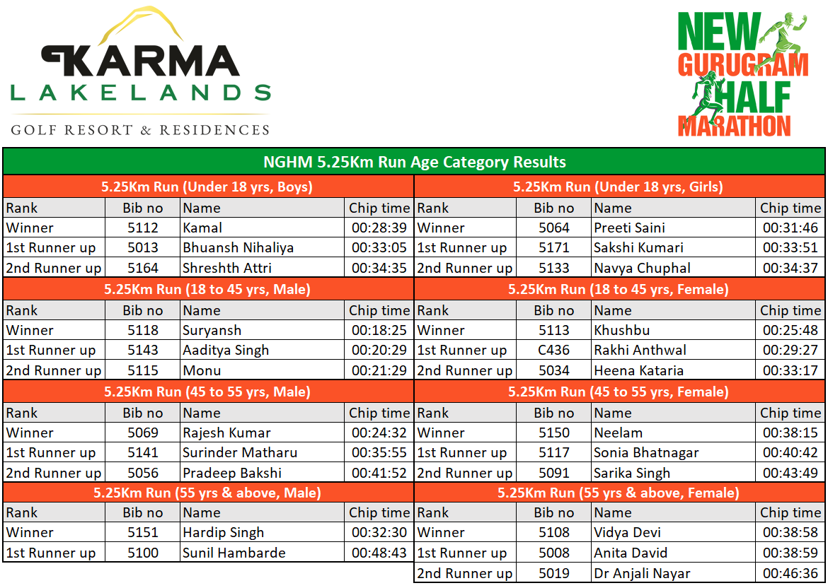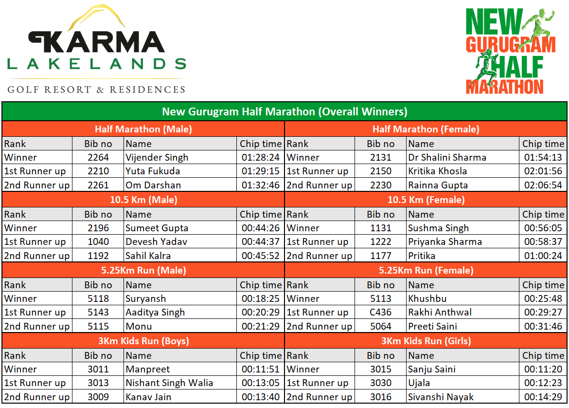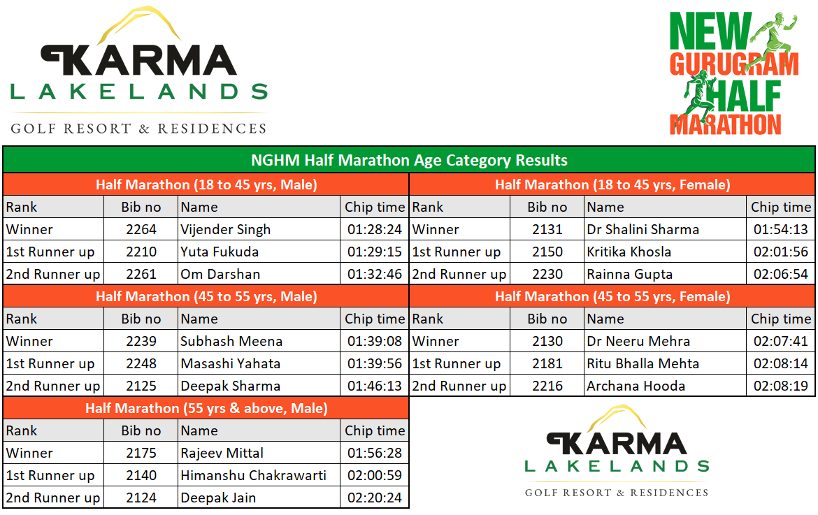 Results - New Gurugram Half Marathon 2023
